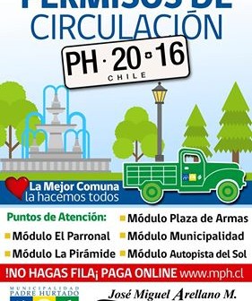 Además, si pagaste el año pasado el Permiso de Circulación en nuestra comuna, puedes pagar On Line en www.mph.cl