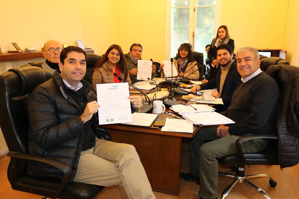 El Concejo Municipal de nuestra comuna, encabezado por el Alcalde José Miguel Arellano Merino, firmó un compromiso denominado “Sello Migrante”.