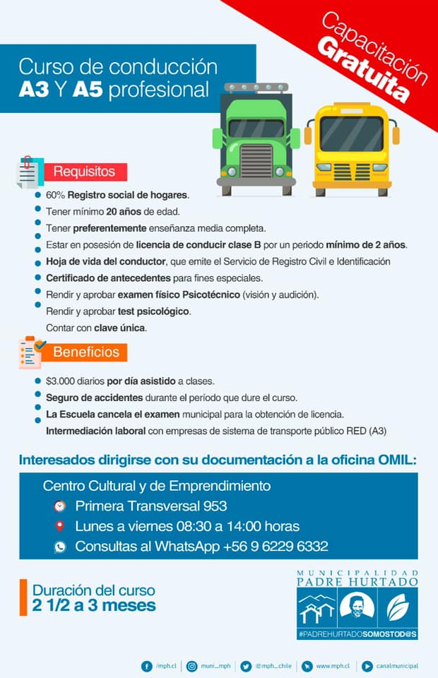¡Capacítate gratuítamente en Curso de Conducción A3 y A5! Revisa los requisitos para inscribirte aquí 0 By comunicaciones on julio 1, 2021 · Noticias Compartir. Twitter Facebook Google+ Pinterest LinkedIn Tumblr Email