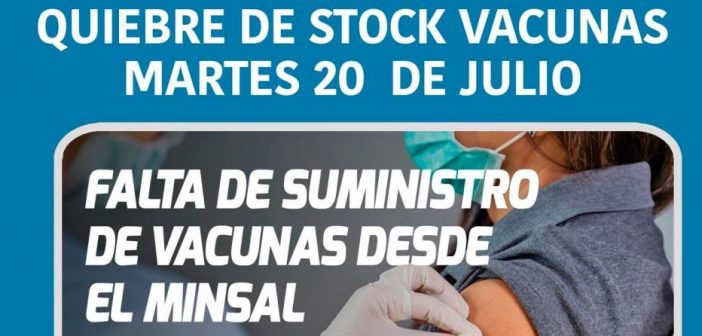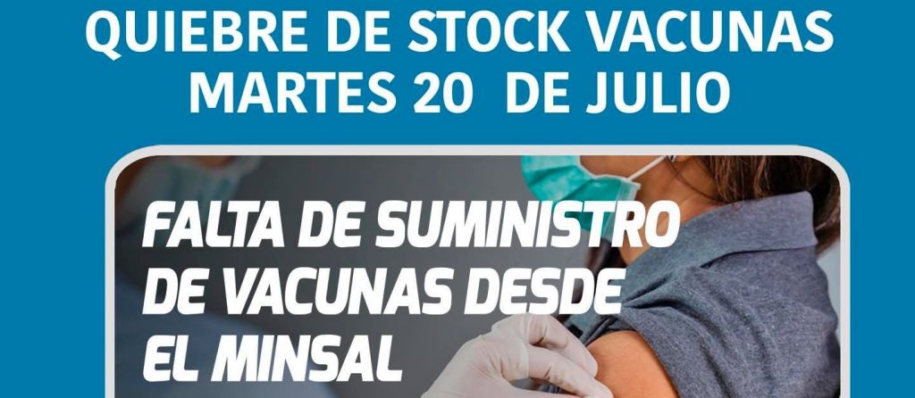 AVISO: QUIEBRE DE STOCK VACUNAS MARTES 20 DE JULIO