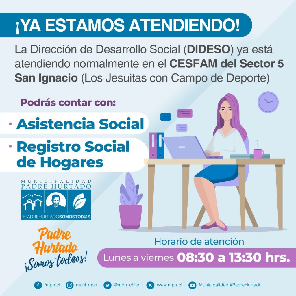 La Dirección de Desarrollo Social (DIDESO) ya está atendiendo normalmente en el CESFAM del Sector 5 San Ignacio (Los Jesuitas con Campo de Deporte)