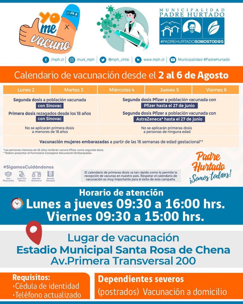 VACUNACIÓN JUEVES 05 DE AGOSTO SIGUE NUESTRO CALENDARIO DE FORMA NORMAL