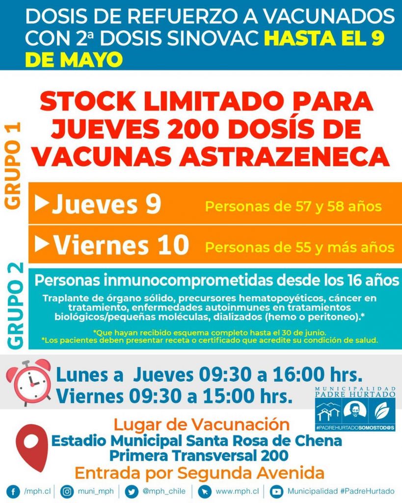 CALENDARIO DOSIS DE REFUERZO MAYORES DE 55 AÑOS PARA MAÑANA JUEVES SOLO 200 DOSIS DE VACUNAS ASTRAZENECA