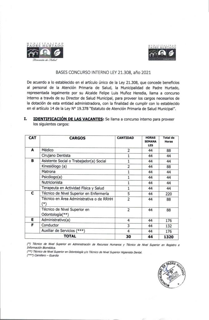SALUD MUNICIPAL: BASES CONCURSO INTERNO LEY 21.308, AÑO 2021 0 By Sergio Cardenas on octubre 18, 2021 · Noticias, Salud DESCARGUE EL DOCUMENTO COMPLETO AQUÍ: BASES CONCURSO INTERNO SALUD 2021 Compartir. Twitter Facebook Google+ Pinterest LinkedIn Tumblr Email