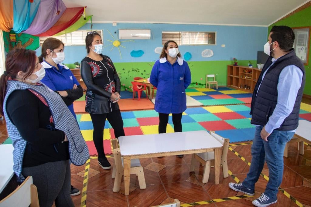 Posteriormente el alcalde se dirigió al Jardín Infantil del Programa de Mejoramiento y Atención a la Infancia (PMI) “Visión de Futuro”, donde fue recibido por la encargada Leslie Caro Morales y coordinaron gestiones para la habilitación de espacios para huertos e infraestructura, entrega de materiales por parte de la municipalidad y futuras reuniones con vecinos de la Villa España.