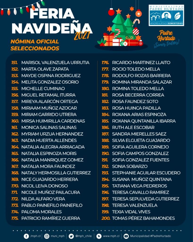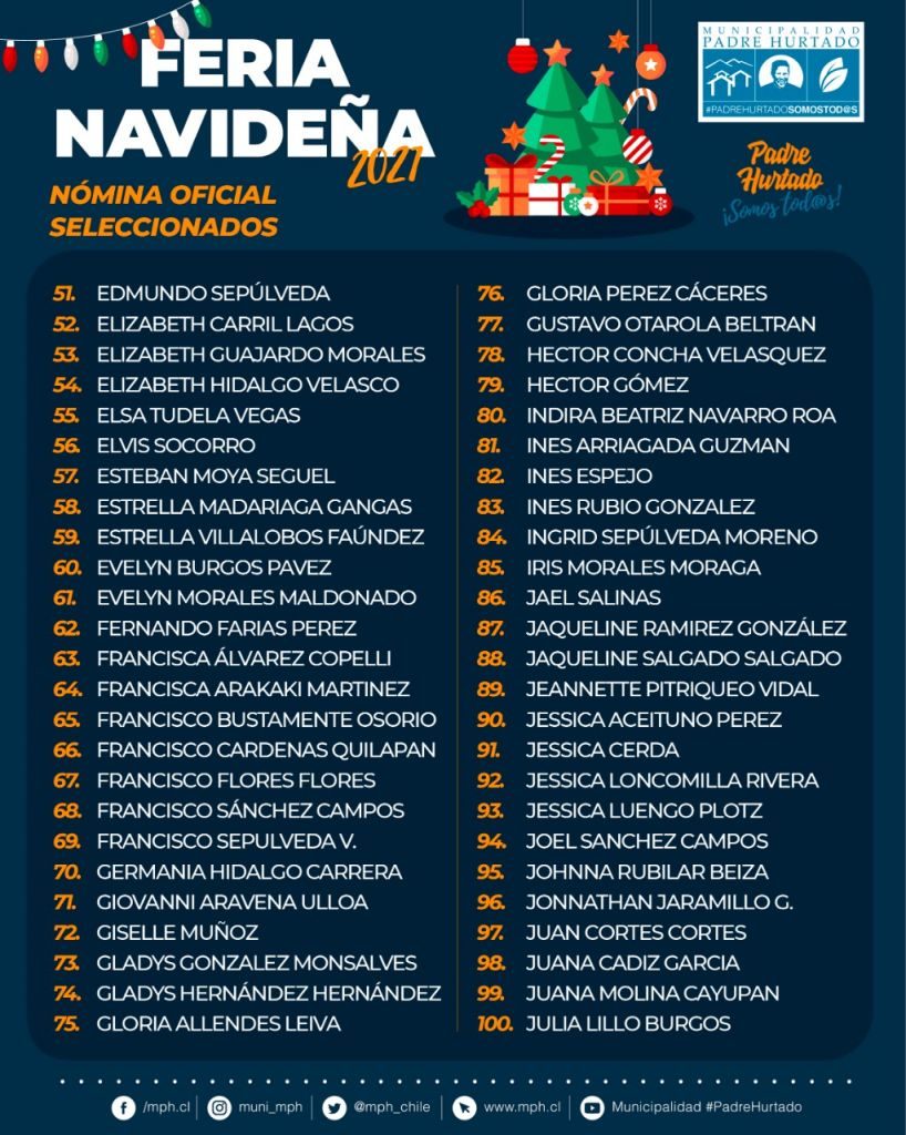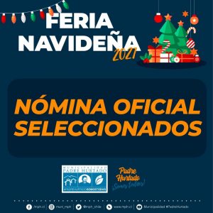 LISTADO OFICIAL SELECCIONADOS FERIA NAVIDEÑA 2021, PAGO DE PERMISOS Y EXENCIONES 0 By Sergio Cardenas on noviembre 22, 2021 · Noticias, Postulaciones DESCARGUE AQUÍ EL LISTADO DE SELECCIONADOS: Nómina Feria Navideña 2021 Compartir. Twitter Facebook Google+ Pinterest LinkedIn Tumblr Email