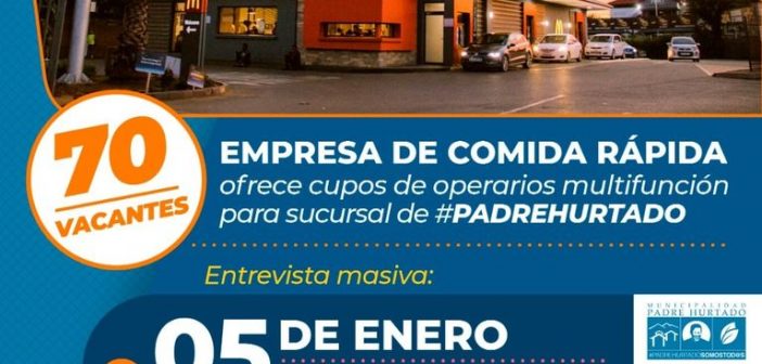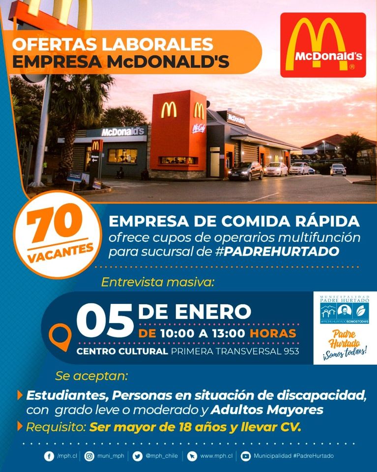 A través de nuestra OMIL Mc’donald’s ofrece puestos de trabajo para la nueva sucursal de #PadreHurtado.