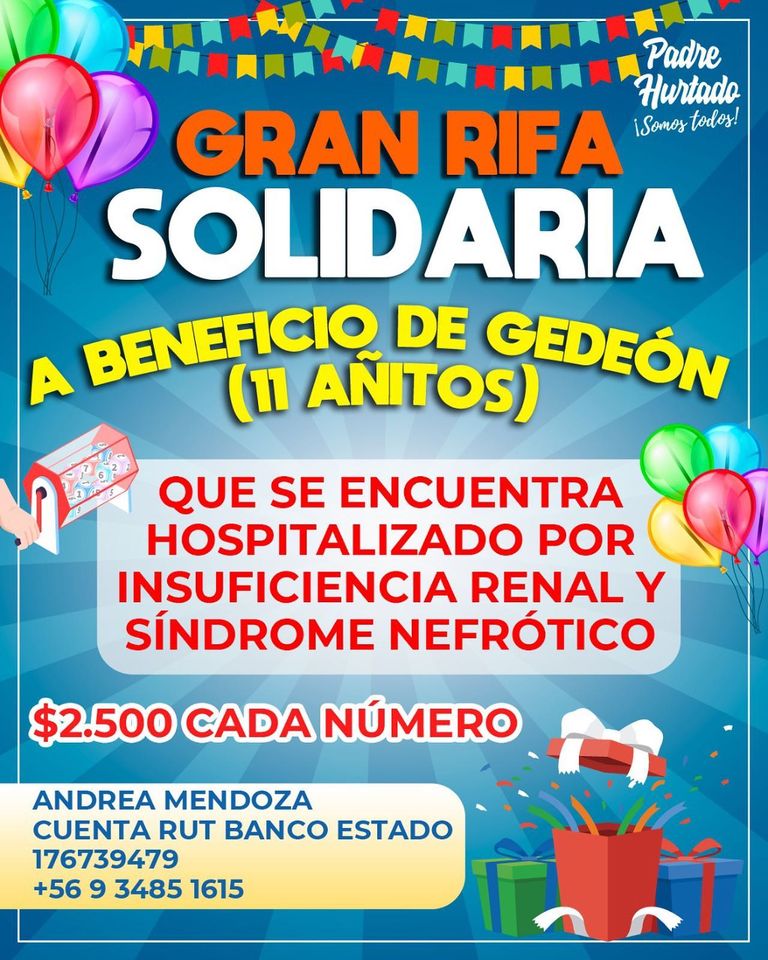 Ahora es cuando Gedeón necesita la ayuda de todas y todos los vecinos de Padre Hurtado.