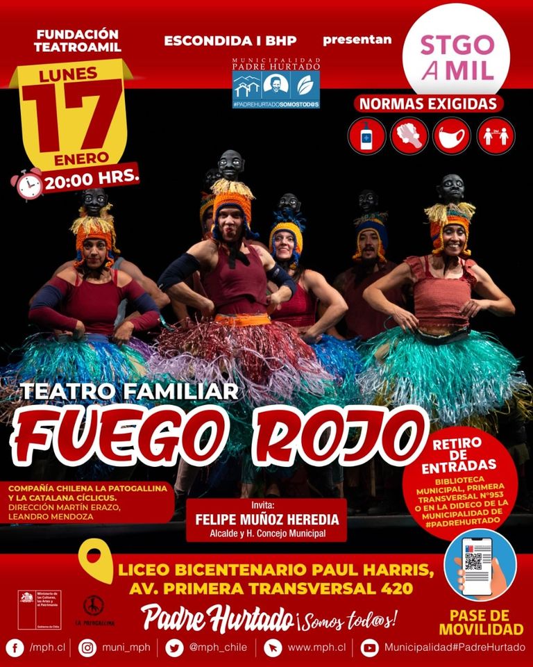 Una Latinoamérica en construcción se presenta en Fuego Rojo, montaje de circo-teatro callejero creado en conjunto por la compañía chilena La Patogallina y la catalana Cíclicus.
