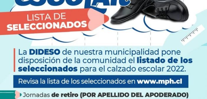 La DIDESO de nuestra municipalidad pone disposición de la comunidad el listado de los seleccionados para el calzado escolar 2022.