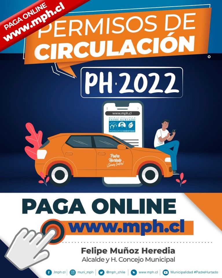 Ahora puedes renovar tu Permiso de Circulación 2022 de la Municipalidad de Padre Hurtado desde tu Smartphone accediendo a 👉👉👉www.mph.cl