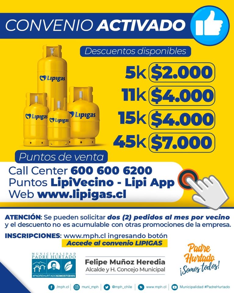 Para todas y todos los vecinos que se inscribieron a través de nuestra página www.mph.cl y que se inscribieron para acceder al descuento de #Lipigas les informamos que ya pueden hacer válido su descuento a través de las siguientes maneras: