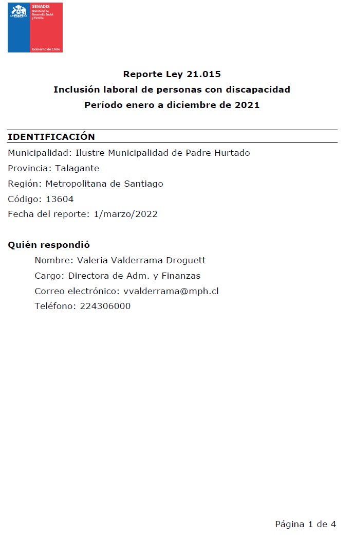 Adjuntamos documento Reporte Ley 21.015 Inclusión laboral de personas con discapacidad Período enero a diciembre de 2021, que puedes descargar aquí: