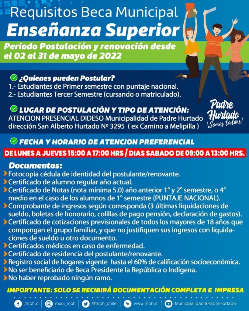 REQUISITOS BECA MUNICIPAL ENSEÑANZA SUPERIOR 2022