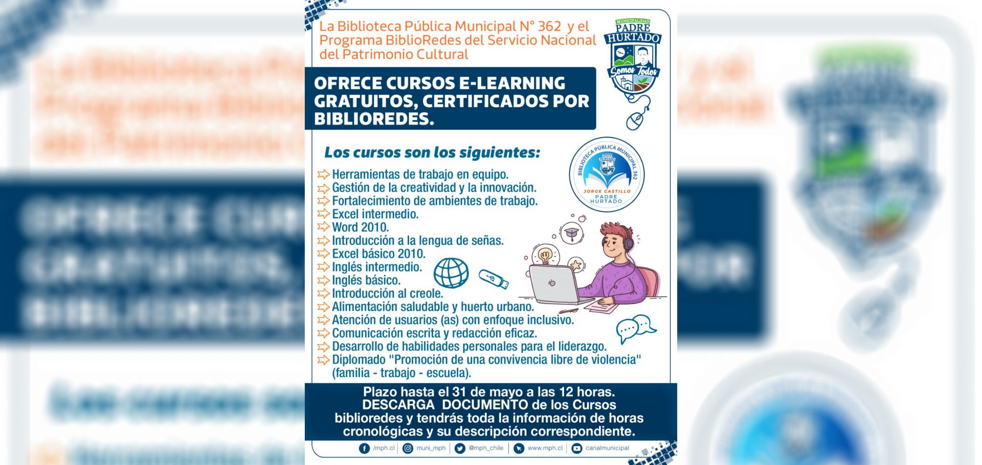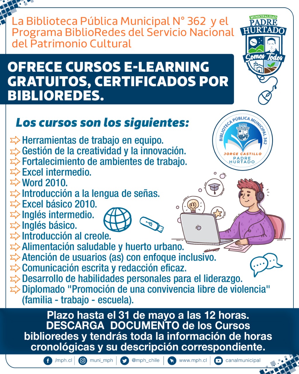 La Biblioteca Pública Municipal N° 362 y el Programa BiblioRedes del Servicio Nacional del Patrimonio Cultural ofrece Cursos e-learning gratuitos, certificados por Biblioredes.