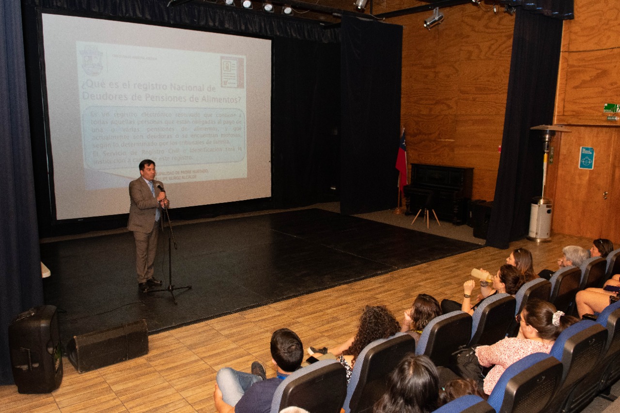 Este viernes, en el Centro Cultural de Padre Hurtado, se realizó una charla para dar a conocer el nuevo Registro Nacional de Deudores de Pensiones de Alimentos, a cargo del abogado Rodrigo Lantadilla, experto en Derecho de Familia.