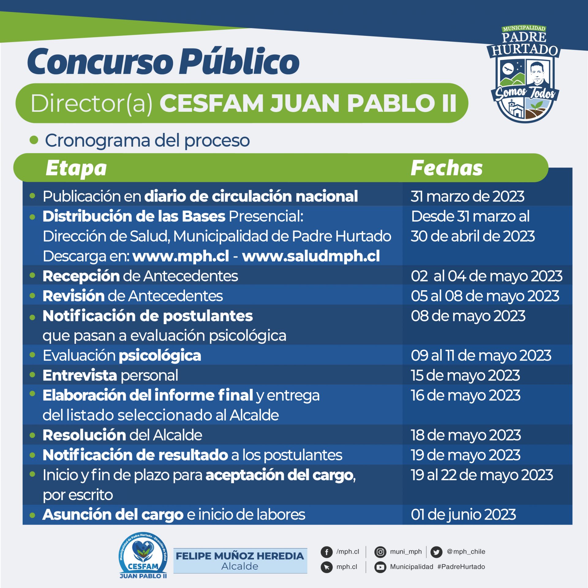 Bases del concurso público para el cargo de Director del Cesfam Juan Pablo II.