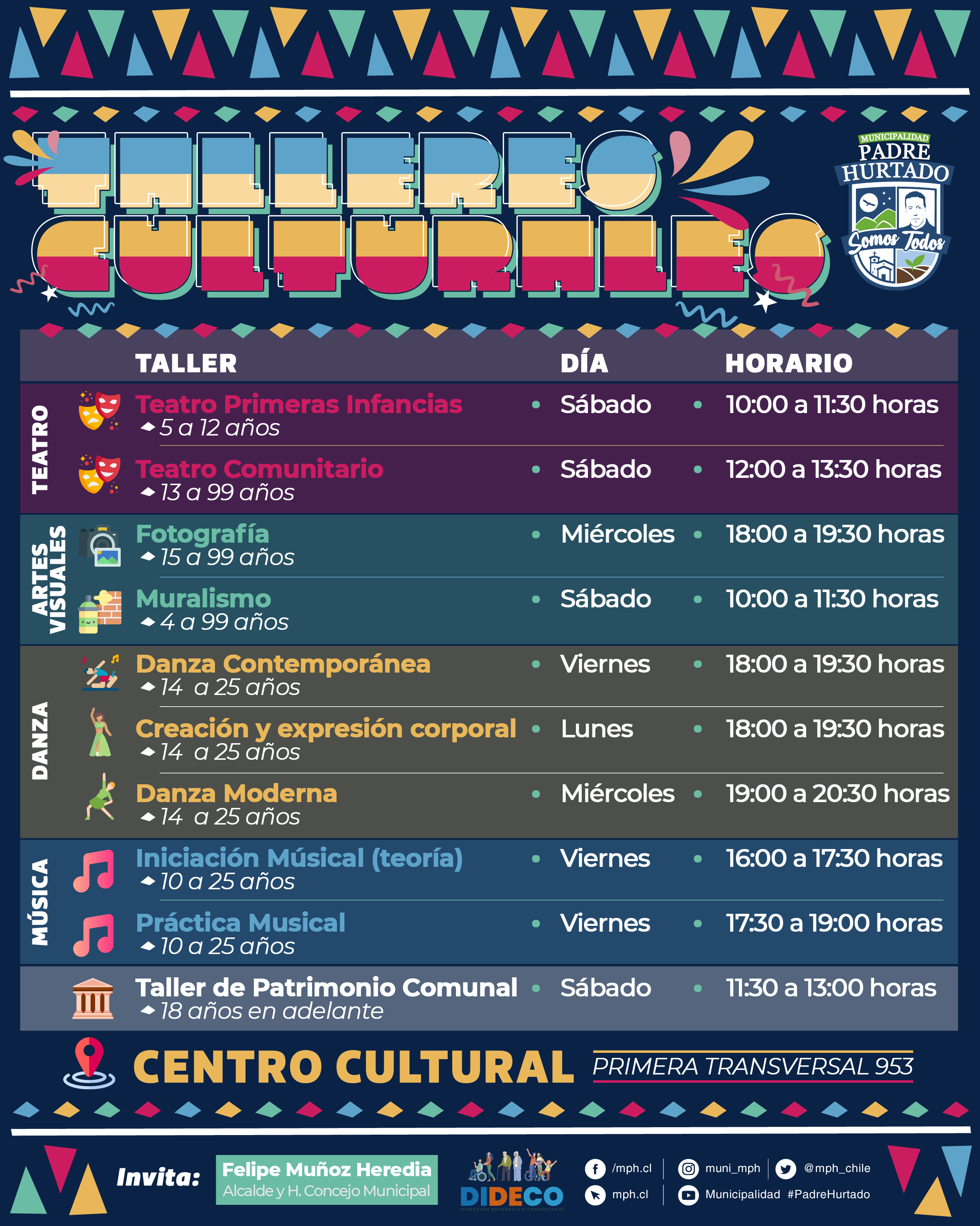 Ya están disponibles los talleres artísticos-culturales que nuestra Oficina de la Cultura ha organizado para todas nuestras vecinas y vecinos.